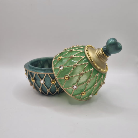 Green Faberge Style Egg Shaped Jewellery Trinket Box